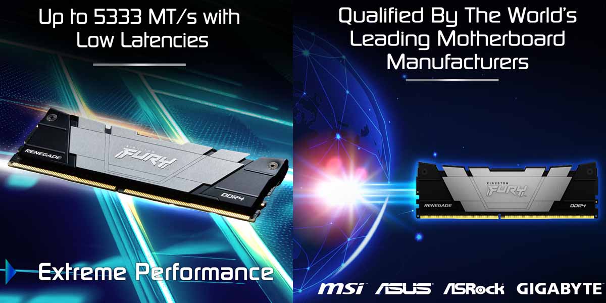 With speeds up to 5333MT/s paired with quick CL16–CL20 timings to help your AMD- or Intel-based system power through games, video editing, and broadcasting, Kingston FURY Renegade DDR4 is the prime choice to meet demands.